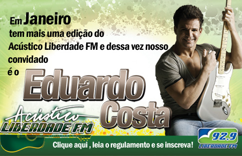 Os fãs do cantor Eduardo Costa terão mais uma oportunidade de ficar pertinho do seu ídolo. A rádio Liberdade FM iniciou uma promoção do acústico só para convidados. A festa, que acontecerá em janeiro, ainda sem data definida, será fechada para convidados da rádio e 25 sortudos que ainda poderão levar um acompanhante.